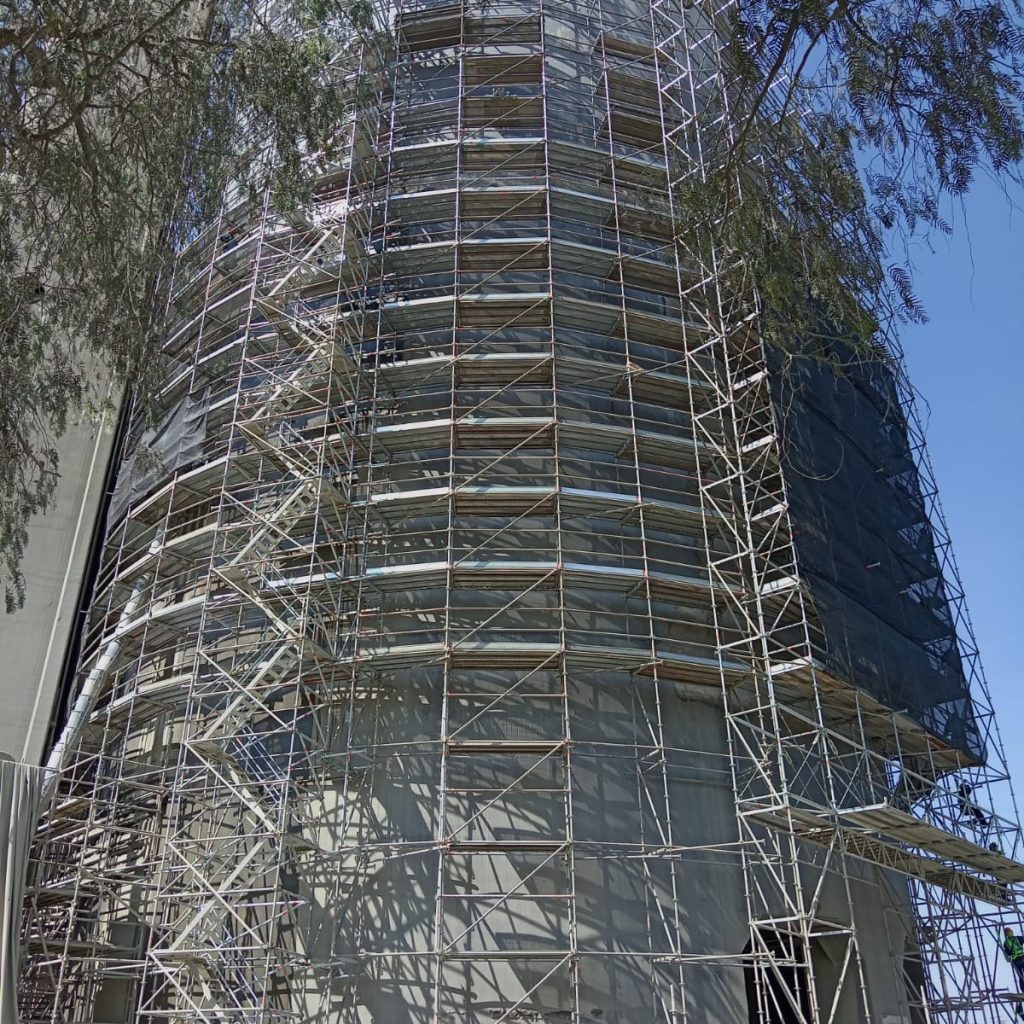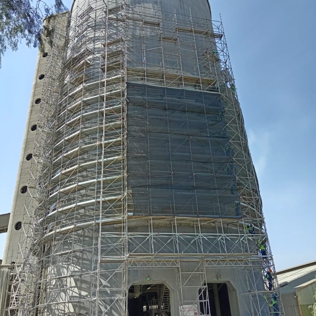 When Kwena Scaffolding was appointed to provide access for maintenance work on the 48‑metre‑high concrete silo at PPC Cement’s Hercules Factory in Pretoria, they faced a demanding brief. Continuous vehicle access was needed around the base, work would occur at significant height, and the site allowed no room for compromise on safety or workflow. To meet those requirements, Kwena partnered with Libra-Plant and turned to Layher.