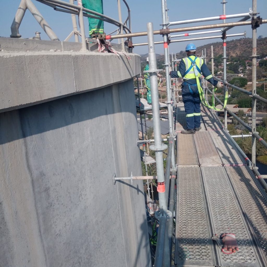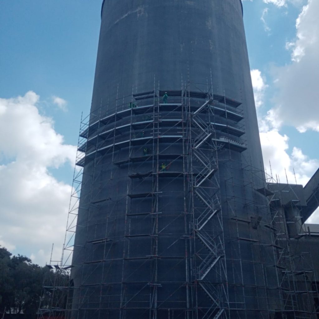 SMART Civils & PT Systems were the appointed contrac‑tors to carry out the maintenance. Kwena Scaffolding took on the challenge of erecting the demanding scaffolding and providing the required access, doing so in close partnership with Libra-Plant and trusting Layher’s system to meet the project’s requirements.